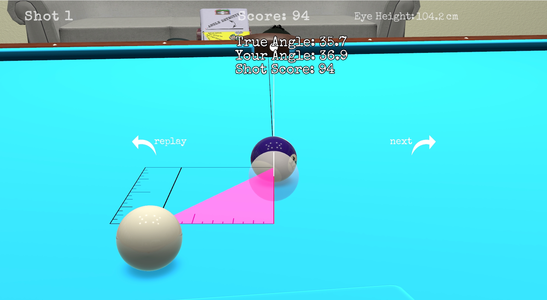 Designed to build transferable skills you can take to the real table, Angle Detective is a unique billiards game that trains your ability to see and recognize shot angles through repeated visual problem-solving.